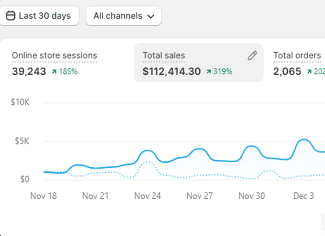 We managed to increase his ROAS by 319% without increasing his total ad spend.